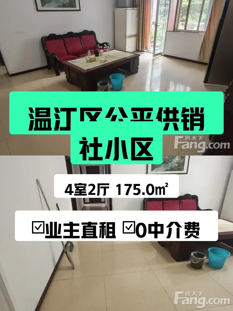 终于决定把自家房子出租啦!这套175㎡的大四房位于温江区公平供销社小区,自己住了5年超舍不得😭但现在闲置着也是浪费,不如找个爱干净的小伙伴合租~