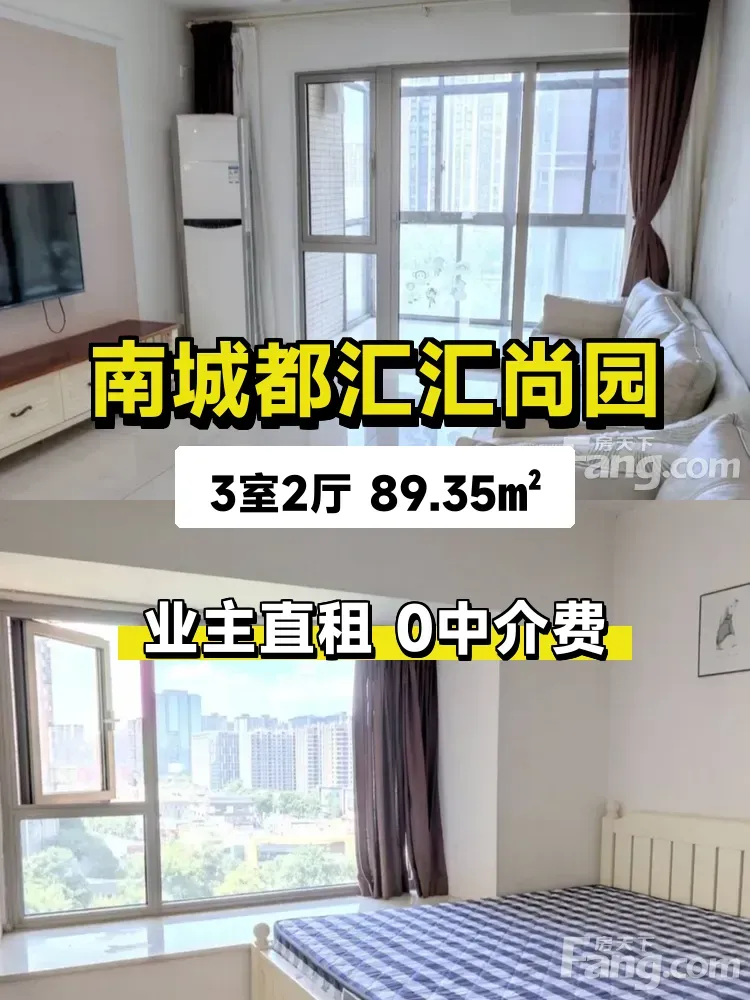 这套房子是我自己家在住的南城都汇汇尚园,因为工作调动空出来啦!✨ 12楼南向的阳光房,89㎡做成三室两厅超级实用,南北通透+双阳台的设计,晾晒、通风都超舒服~主卧朝南,冬天晒太阳超治愈🌞