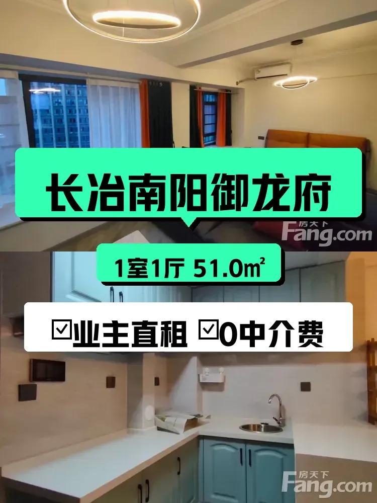 标题:自家精装小窝出租啦!长冶南阳御龙府南北通透1室1厅✨