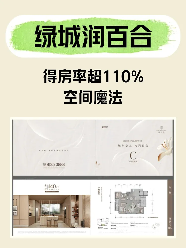 你见过得房率超110%的改善户型吗?绿城润百合这次的操作,真打破了我对空间的认知!总观点:它用空间创新+自然融合,重新定义成都改善生活的打开方式。反常识细节:1.140㎡户型竟有40㎡阔绰方厅+270°环幕主卧,实际使用感像160㎡,空中院馆还能改茶室;2.园林不是绿化堆料,百合门庭→沁蕊长廊→8000㎡公园,四季花汀串联双地块,散步如逛景区;3.建筑立面像“全面屏”,曲面圆弧+花苞造型,全封窗既美观又防尘。辩证:4.1万/㎡不算低,但对品质生活者而言,空间利用率与自然融合的设计值得考量。结尾:生活的容器要装下更多热爱呀!你心中的理想家,是不是也需要这样的“空间魔法”亦是如此?
