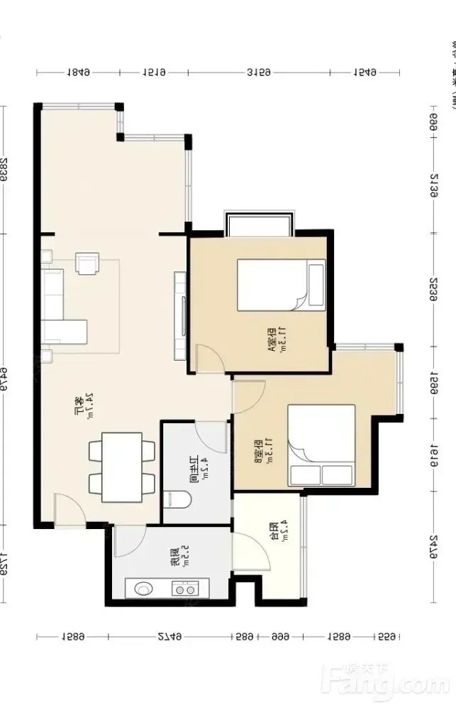 ✔️建筑面积71㎡的两室两厅