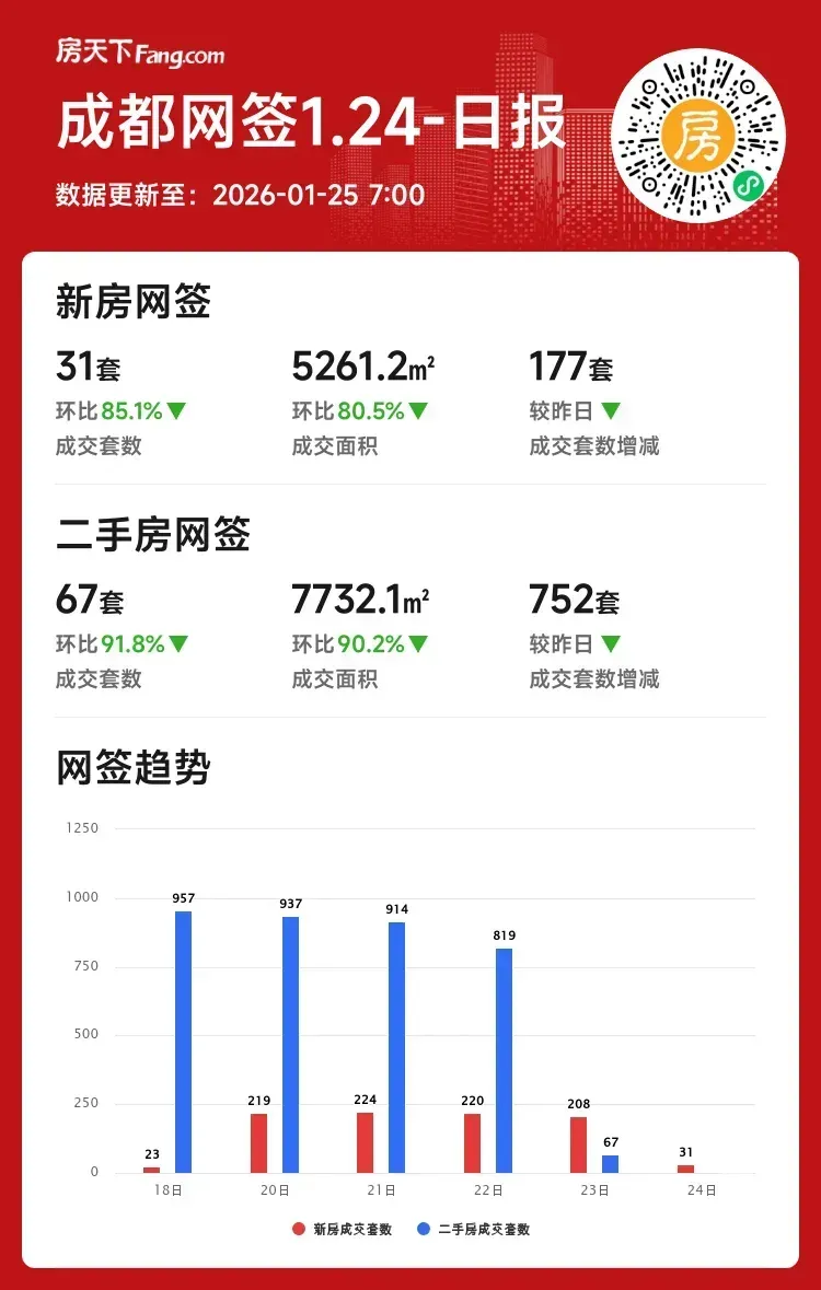 单日成交数据断崖式下跌,二手房成交面积较昨日锐减9成,新房成交量不足前日1/6。临近春节假期,市场进入传统淡季。