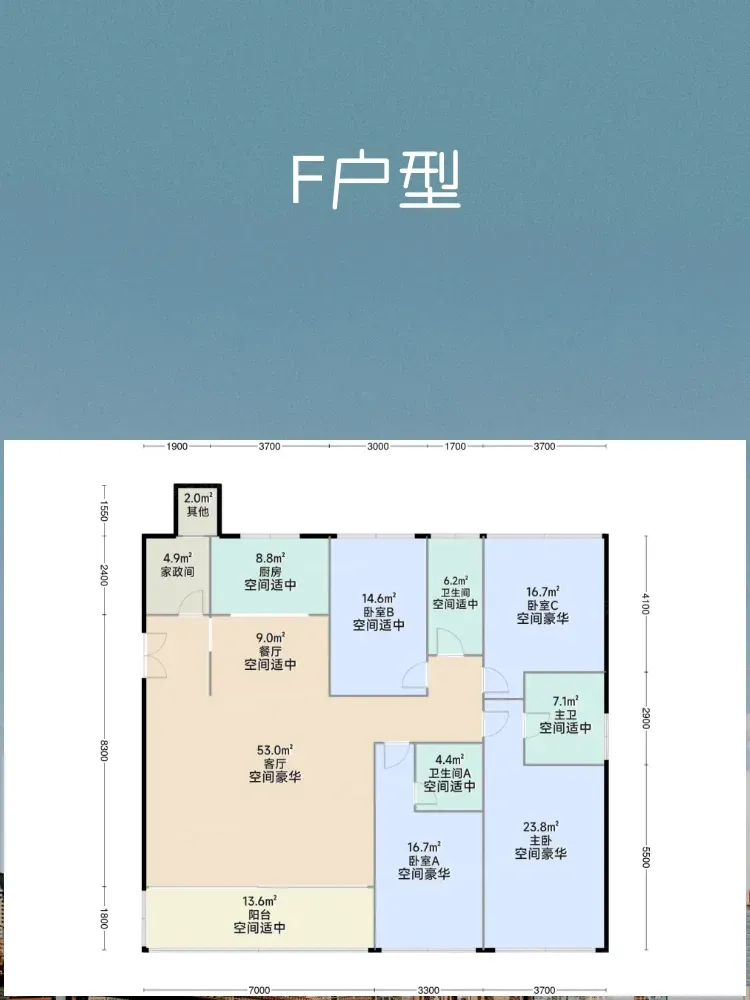 【F户型 190㎡ 四房两厅三卫】