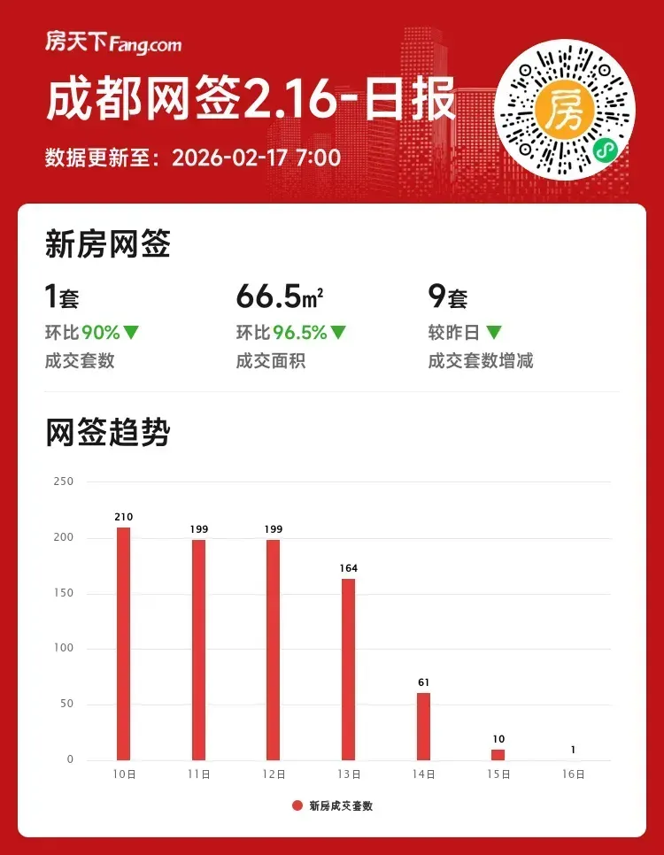 单日成交量环比暴跌9成,成交面积缩水超96%,春节后市场突遇断崖式降温。但结合本月总成交数据看,成都新房市场仍保持7.7%的温和上涨趋势。