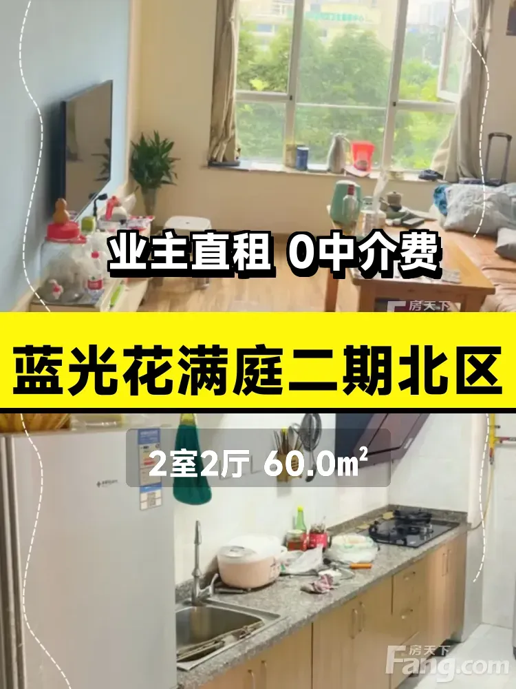标题:自家精致套二出租啦!蓝光花满庭60㎡只要1600/月✨