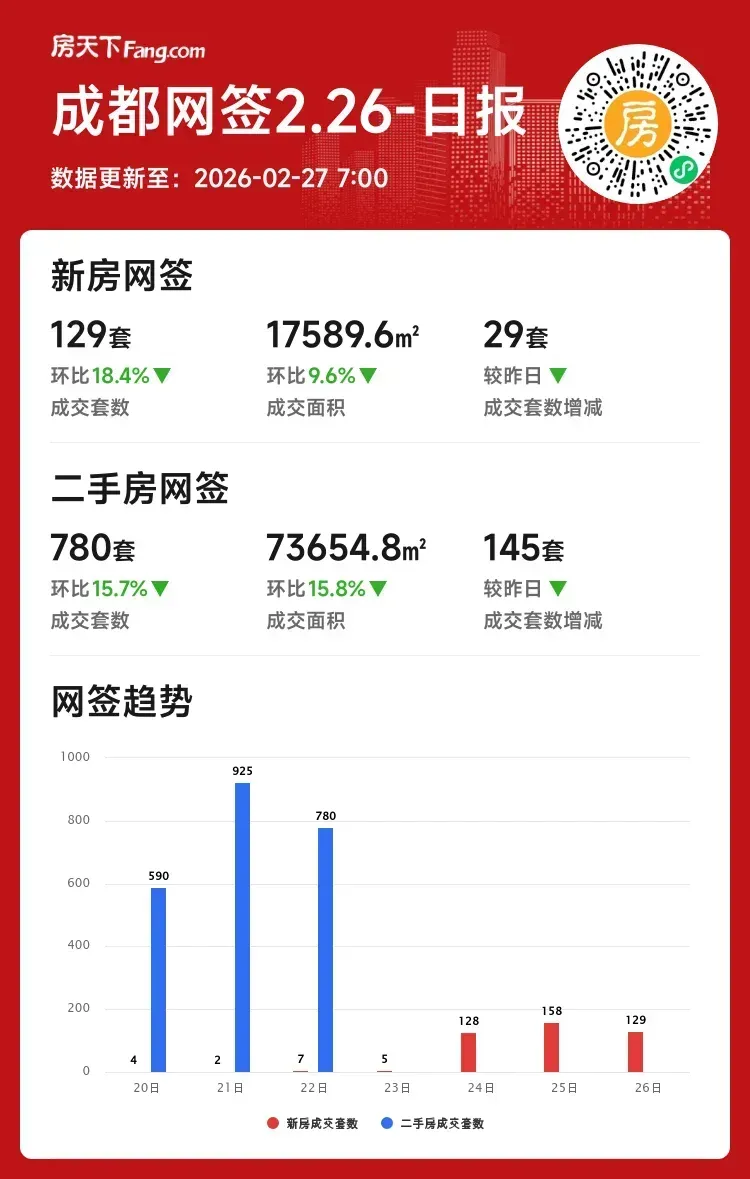 成交套数:780套 ↓15.7%(较昨日减145套)