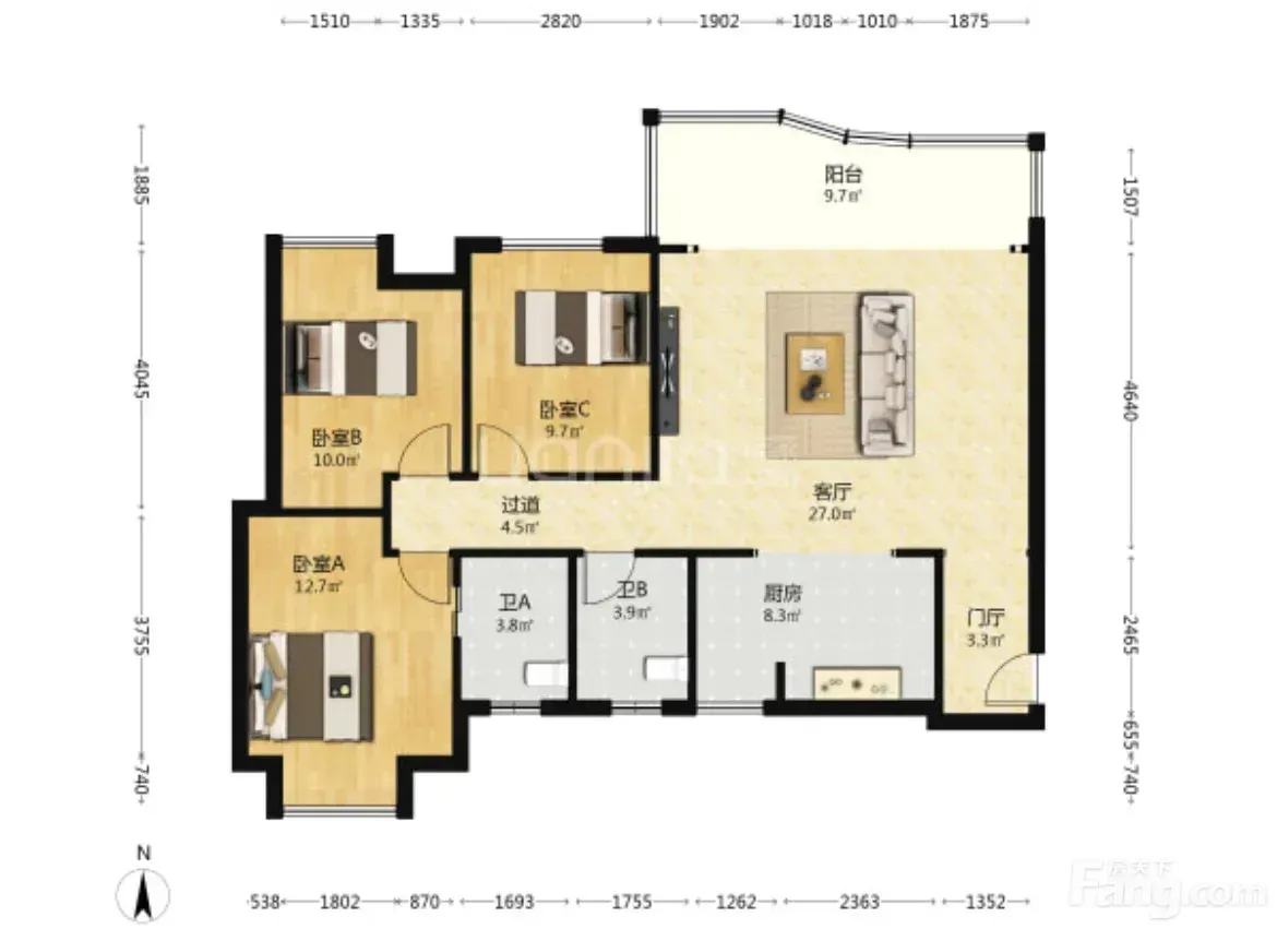 因为是首层(总高15层),自家带个小花园,种花种菜超方便🌻!三个卧室都够大,主卧放1.8米大床后还能摆下梳妆台。厨房做了L型橱柜,储物空间特别足👩🍳