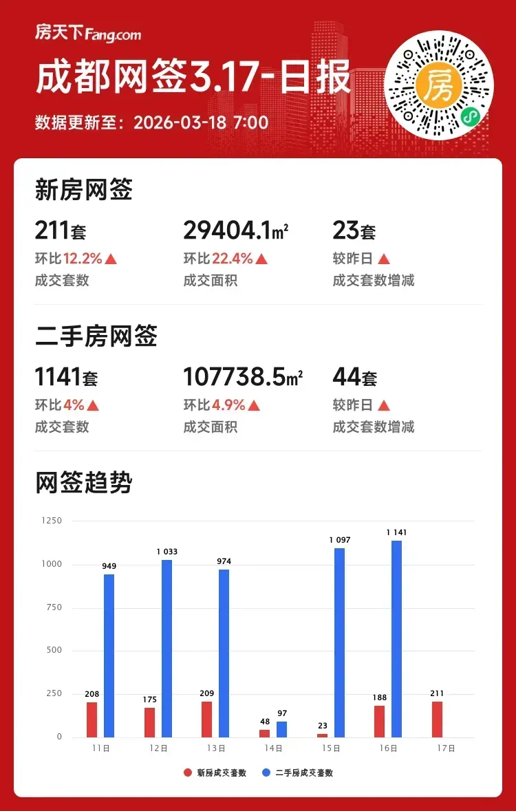 成交套数:211套 ↑12.2%(较昨日增23套)