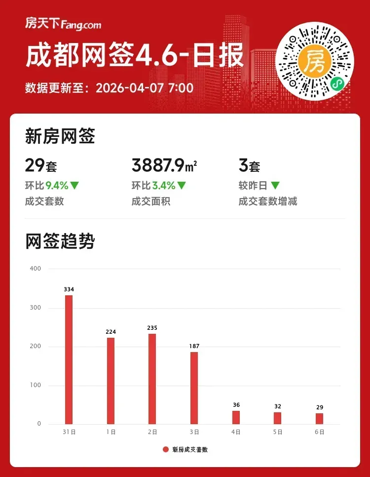 2026年04月06日成都新房成交遇冷 月度数据大幅下跌