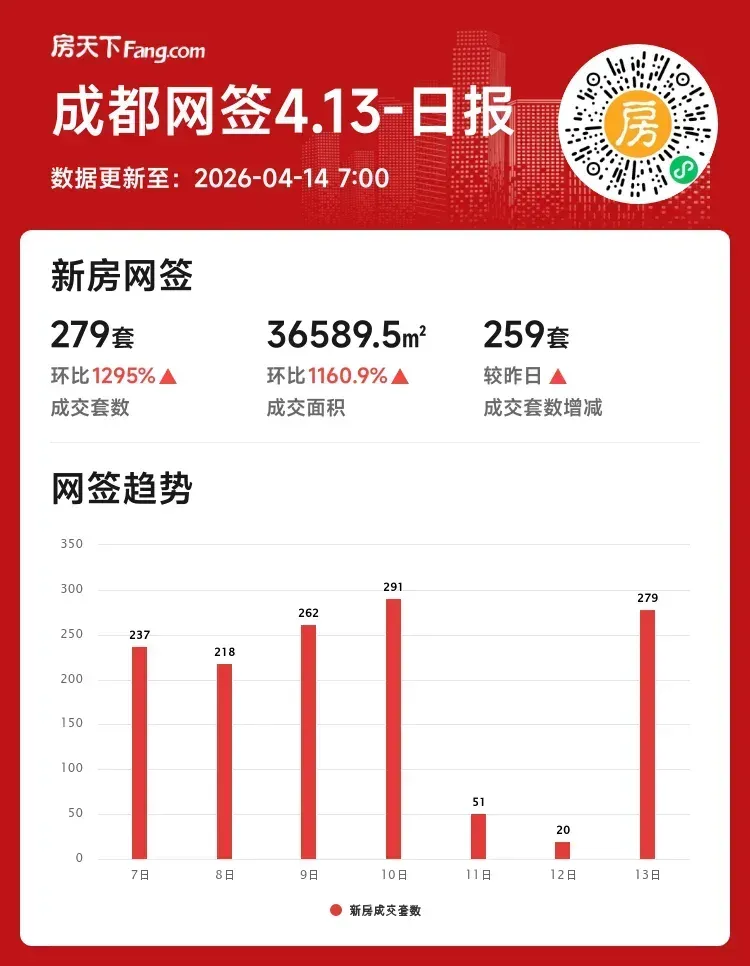 2026年04月13日成都新房单日成交暴增12倍!本月整体却下滑近四成