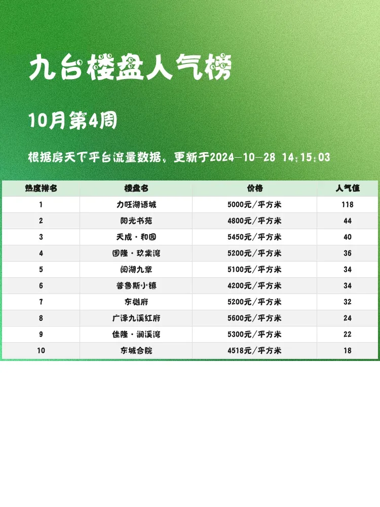 在当今购房市场,选房尤为重要🏡。一个合适的楼盘不仅要满足居住需求,更需兼顾生活便利与未来升值潜力。今天为大家带来九台区人气楼盘排行榜,助力大家做出更明智的选择!