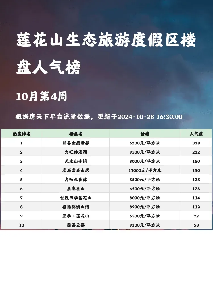 在买房的过程中,了解人气楼盘榜单是十分重要的。在市场竞争激烈的情况下,选择合适的楼盘不仅能为生活提供便利,也能为未来增值带来保障。因此,为各位购房者总结了莲花山生态旅游度假区内最受欢迎的楼盘,助您做出最优选择!