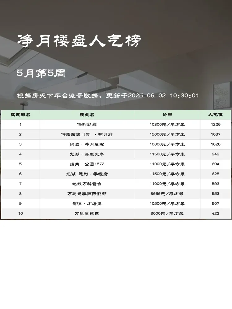 买房选对区域很重要,但同区域内楼盘差异也不小!这份净月区人气榜单帮你快速锁定优质盘👀 当前市场下,性价比+配套成熟度+户型实用性才是王道,快来看看这些楼盘凭什么上榜~