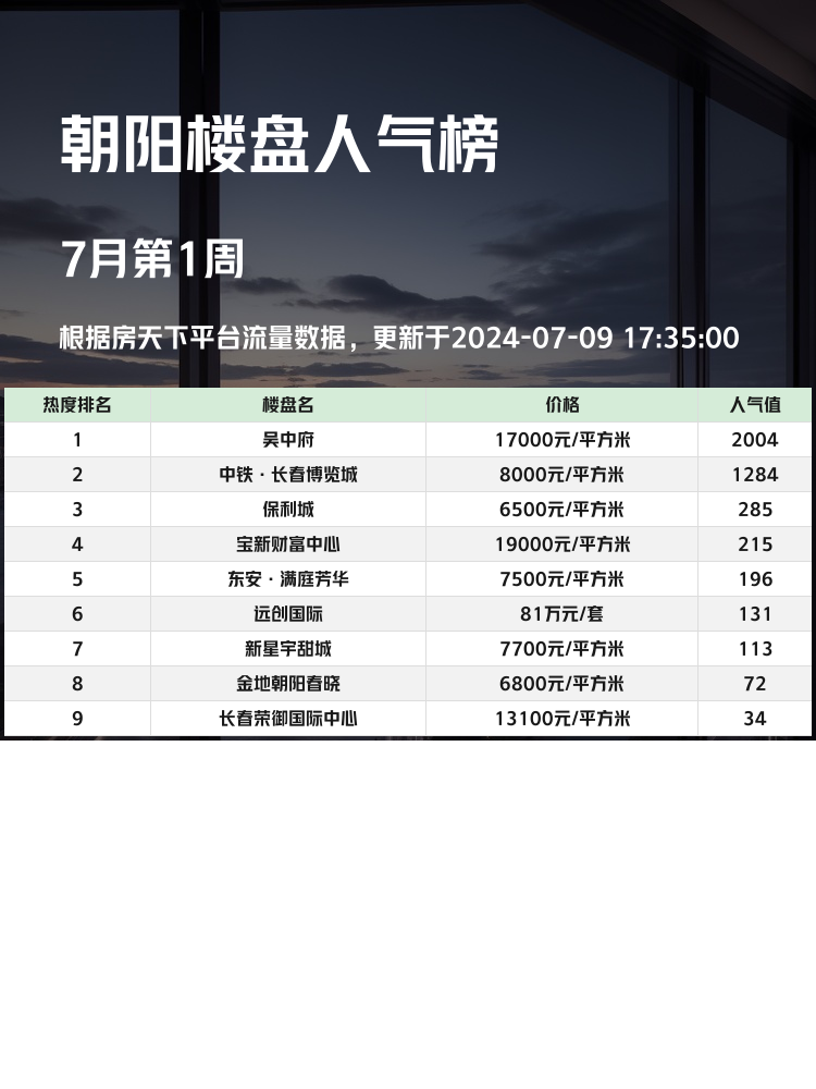 🏡在购房过程中,人气楼盘榜单是一份极具参考价值的指南💡。无论是首次置业还是投资房产,了解市场热门楼盘的优缺点都非常重要。今天,我们就来揭晓朝阳区域的人气楼盘榜单,为你提供实用的购房资讯!📈