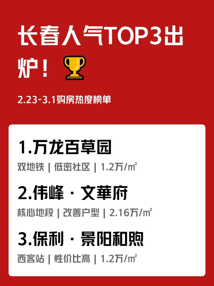 长春2.23-3.1购房热度出炉🔥南关区包揽冠亚军!每天通勤2小时vs下楼就是地铁站,精明买家都怎么选?速看人气前三解析👇