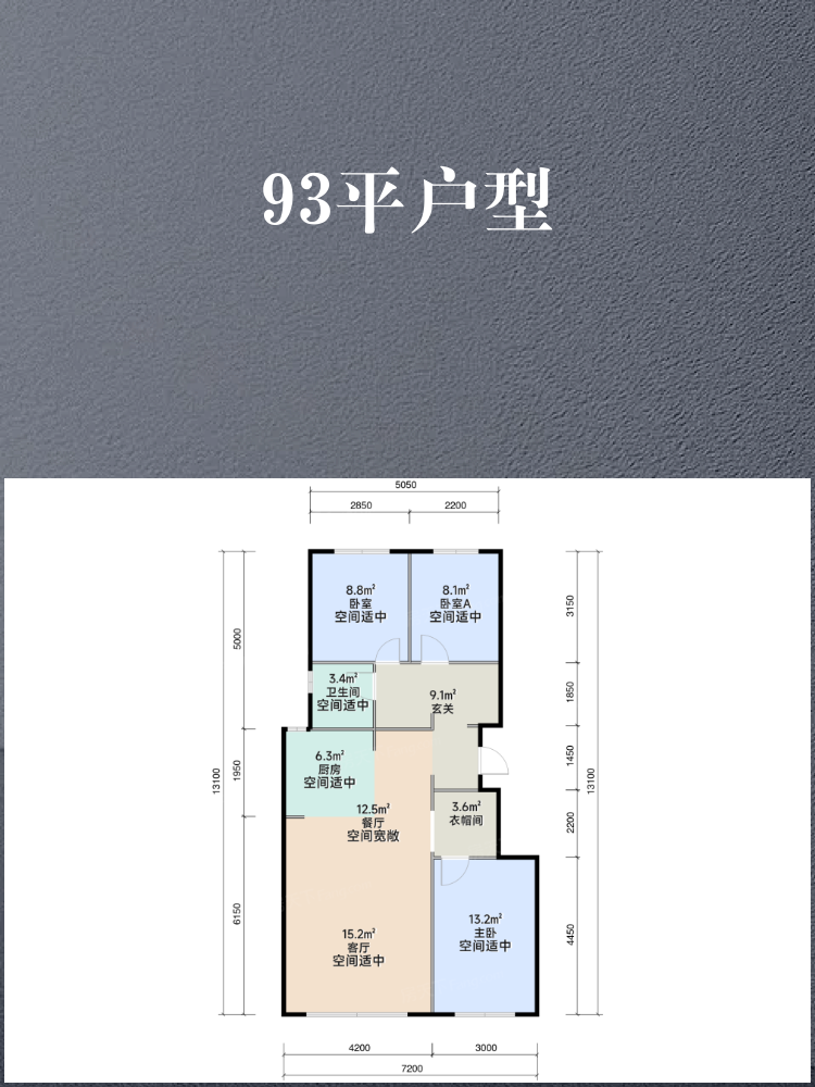 🌟 **93平户型:3室2厅1卫**