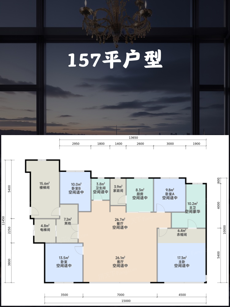 - 建筑面积:157.00㎡