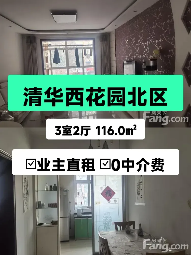 标题:自家清华西花园大三居出租💖南北通透随时入住
