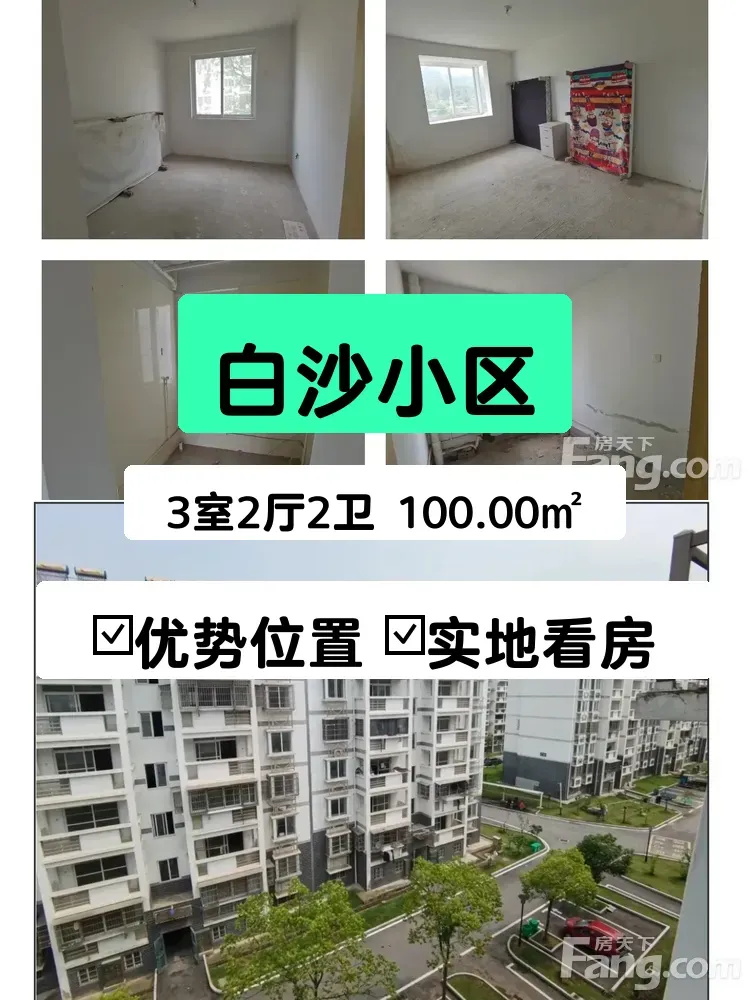 最近有点忙,想把我家这套房子卖出去,给大家介绍一下吧!我家在白沙小区,位置特别好,就在348国道旁边,交通特别方便。房子是100平的3室2厅2卫,格局很方正,采光也超好,因为朝南嘛,阳光洒进来特别舒服。楼层是4楼,总共7层,不高不低刚刚好,爬楼不累,视野也不错。