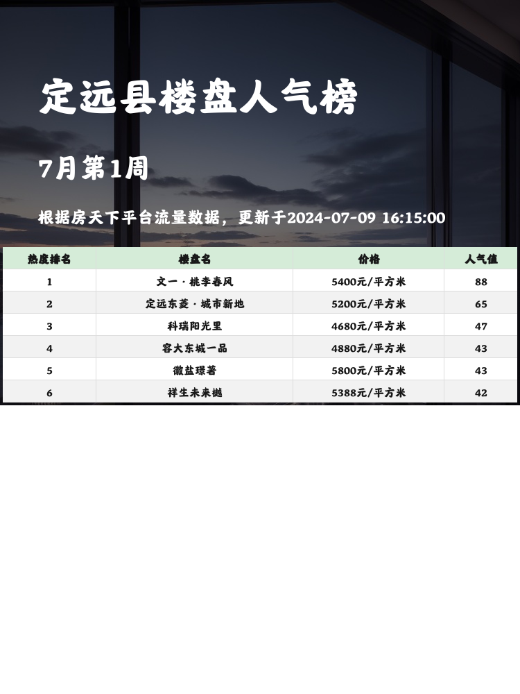 🏢🌟 定远县人气楼盘榜热度排名第3名:容大东城一品