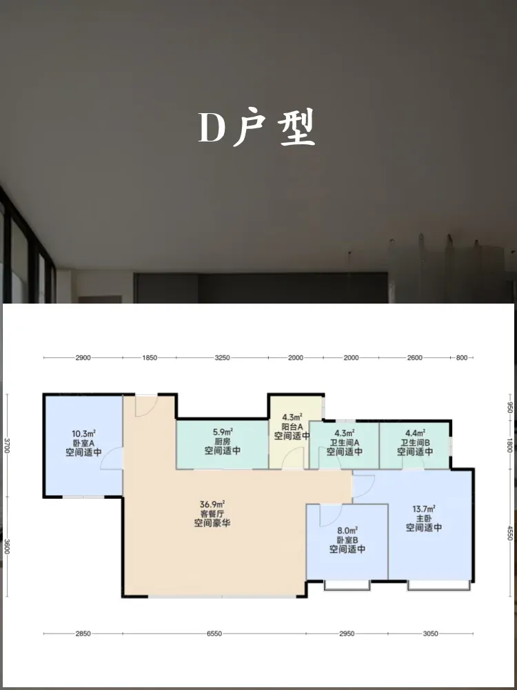 🏢D户型:3室2厅2卫,建筑面积97.00㎡