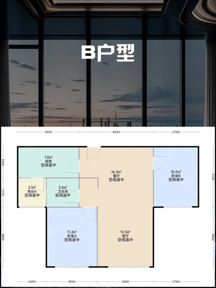 🏠B户型:2室2厅1卫,建筑面积66.47㎡