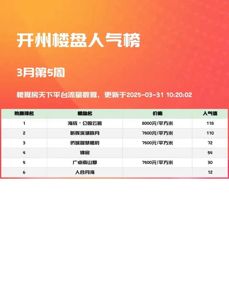 买房选房看榜单准没错!🔥当下市场既要关注价格优势,更要看重配套成熟度与居住舒适感。这份开州最新人气楼盘榜,帮你快速锁定高性价比好盘,省时省力不踩雷~