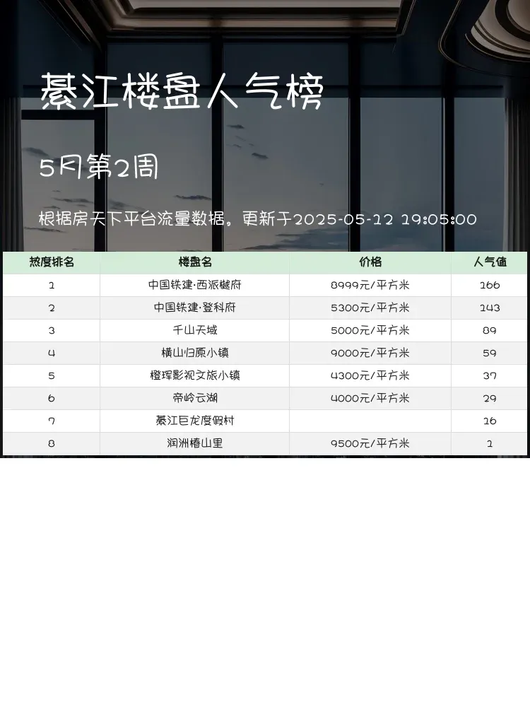 买房不踩雷💣这份綦江人气楼盘榜单必须收藏!当前市场下,性价比+教育资源+交通便利度已成购房三大黄金指标✨榜单真实反映楼盘热度,帮你快速锁定优质资产🏡