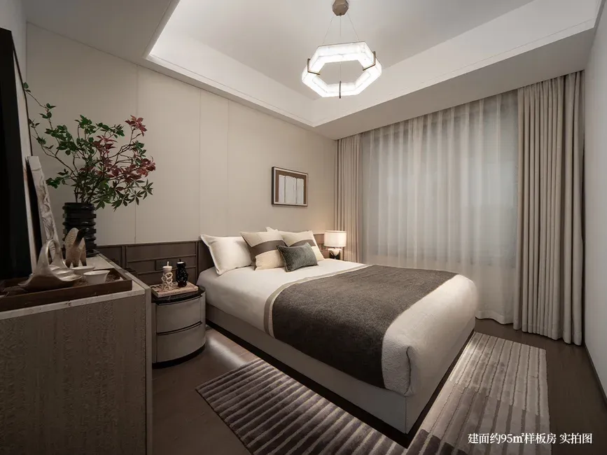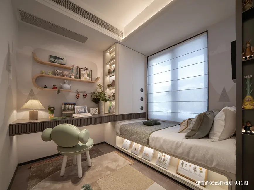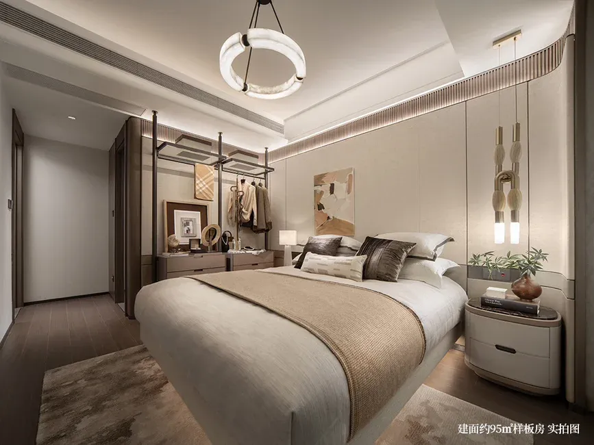 • 灵动卧室:主卧套房设计,配备独立卫浴与衣帽间,为您打造私密、舒适的休憩空间。柔和的灯光下,卸下一天的疲惫,尽享静谧时光。次卧可根据家庭需求灵活改造,无论是作为孩子的成长天地、长辈的温馨居所,还是静谧的书房,都能完美适配。