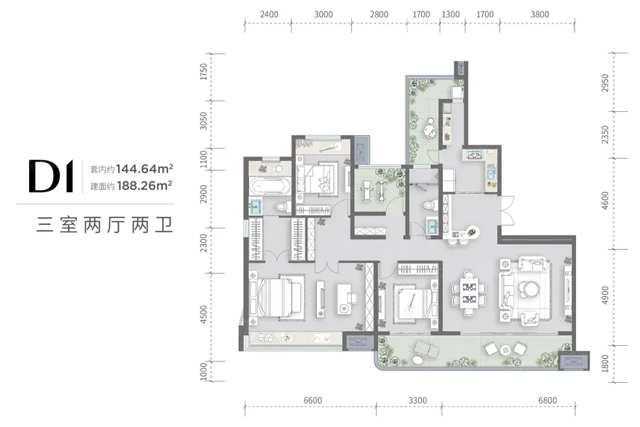 ▫️户型精分现场:188㎡横厅采光绝,但设备平台占用飘窗面积