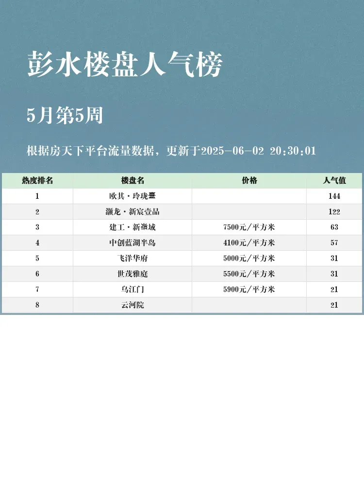 买房看榜单,选房不踩雷💡!当前市场下,地段+配套+性价比才是王道。彭水最新人气楼盘榜新鲜出炉,这份真实热度排名,帮你快速锁定优质房源,省时又省心✨