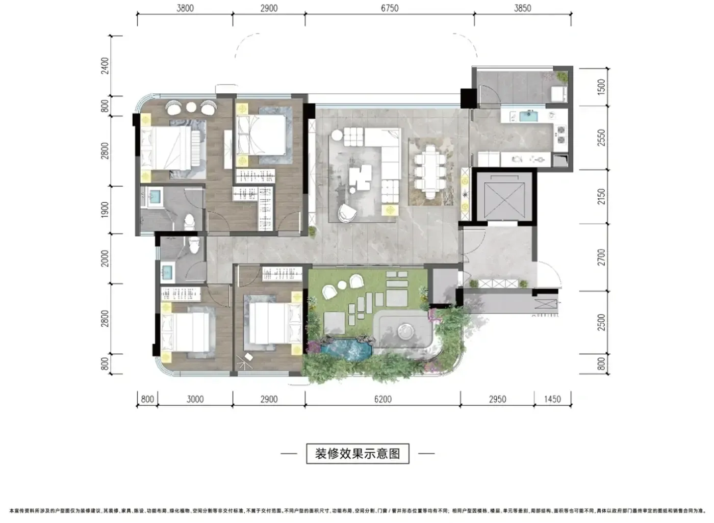 ▼ 常规户型:主卧套间挤占客厅面积