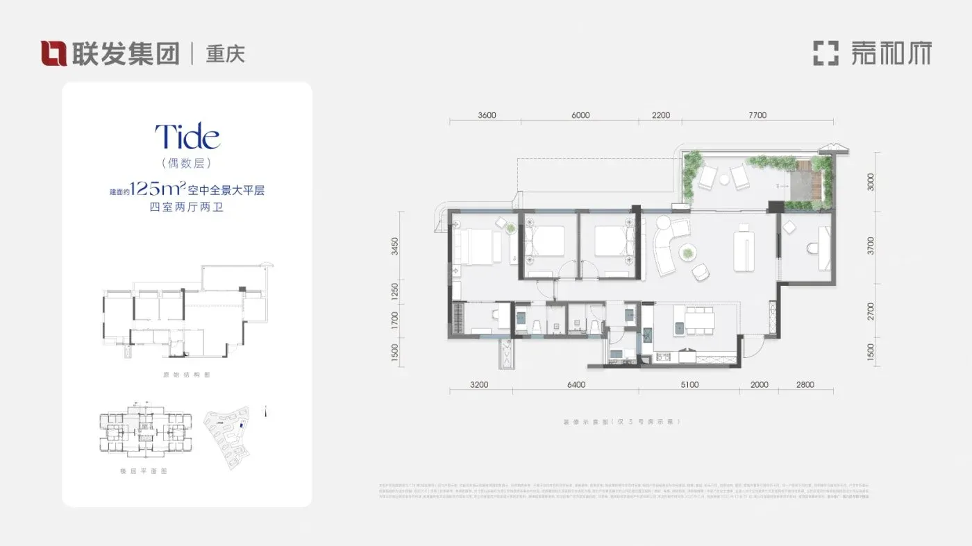 第四代住宅卷到重庆市场后,联发嘉和府把大平层门槛拉到300万级。对比观宸同面积段产品,单价差了近1万,但同样有空中院馆设计。北区这种倒挂现象,实属罕见。