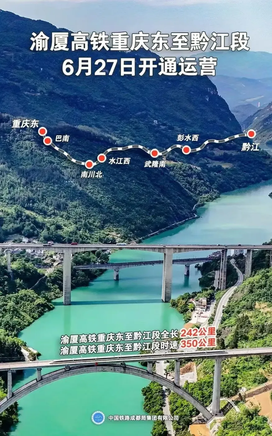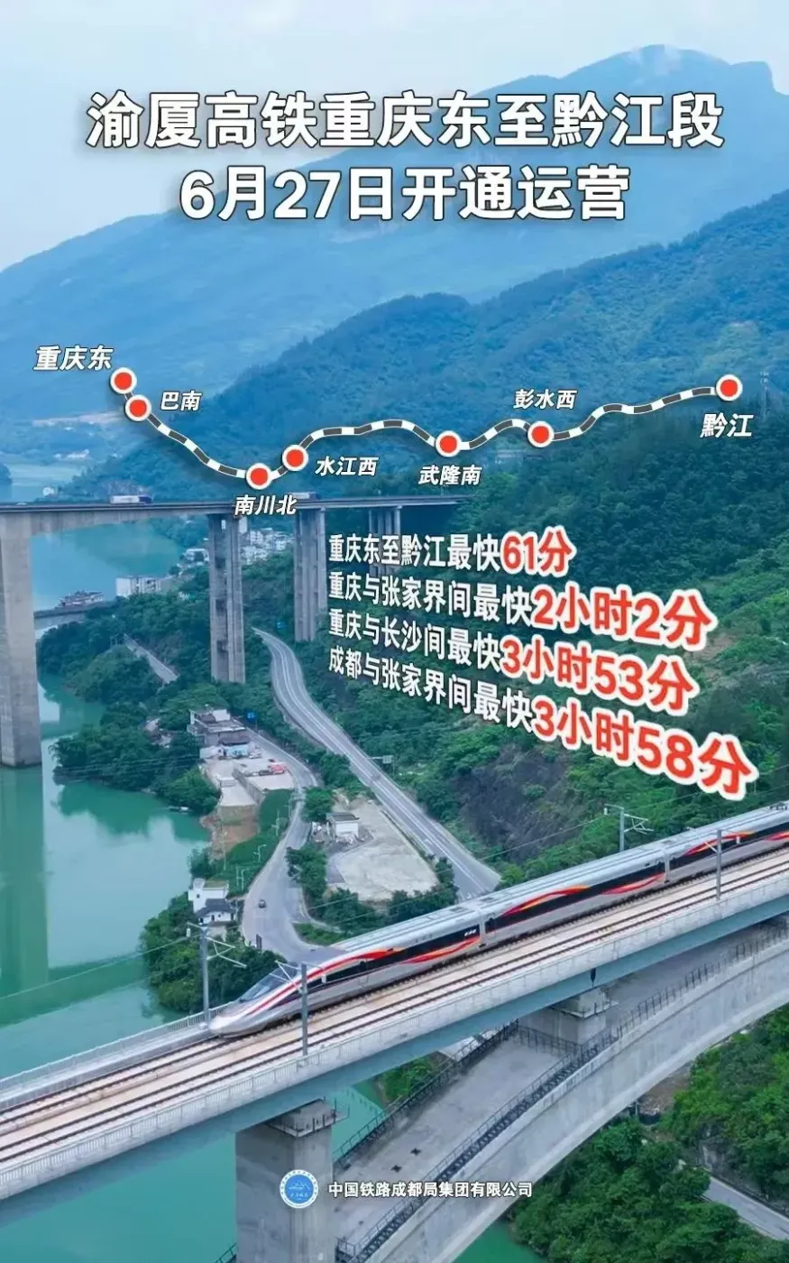 ▫️ 渝厦高铁开通:重庆→长沙3小时53分(提速2倍!)