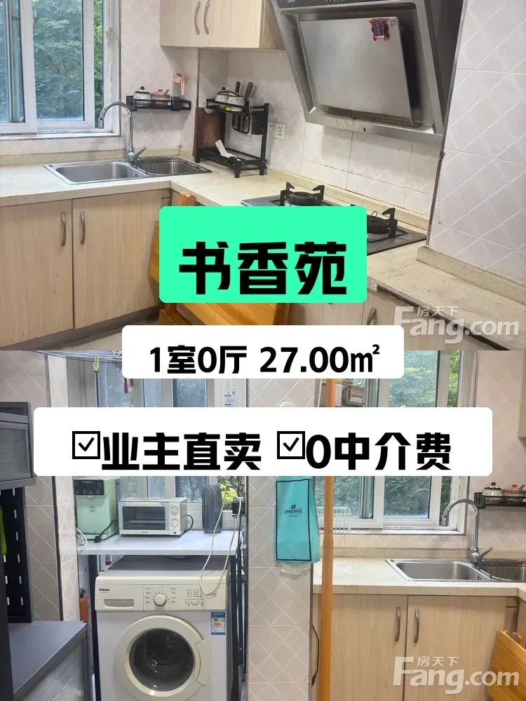 这套小房子是我自己住了好几年的家✨,因为工作调动不得不忍痛转手😢。房子在渝中区的**书香苑**,2013年的电梯房,虽然只有27㎡,但朝南采光超级棒🌞,冬天阳光能晒到沙发角,特别舒服~