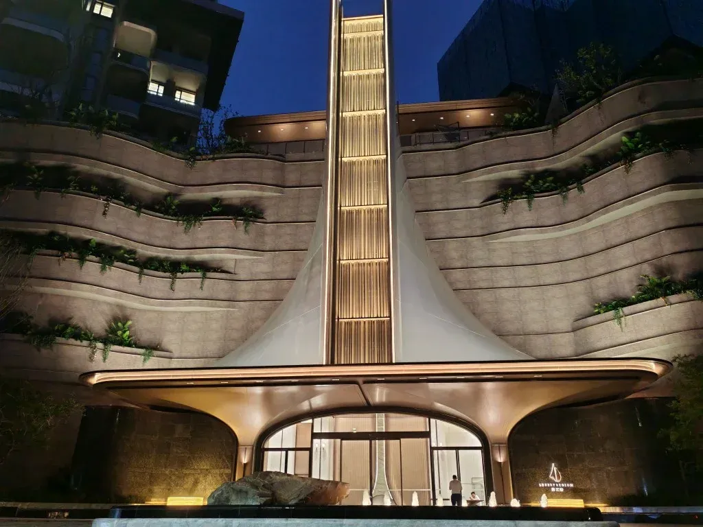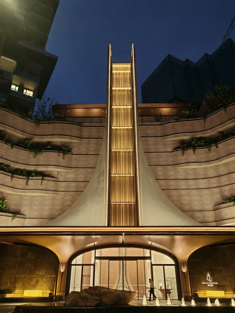大门如同一件公共艺术品,流畅的曲线与灵动的水景相映成趣,成为连接城市喧嚣与家园宁静的优雅过渡。