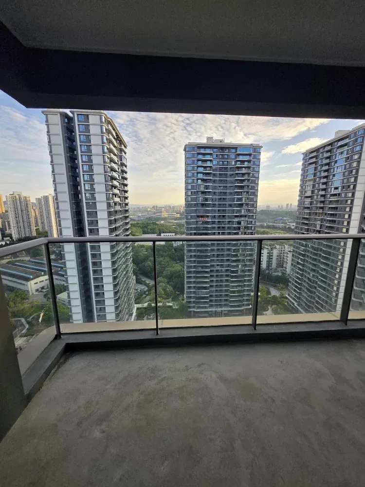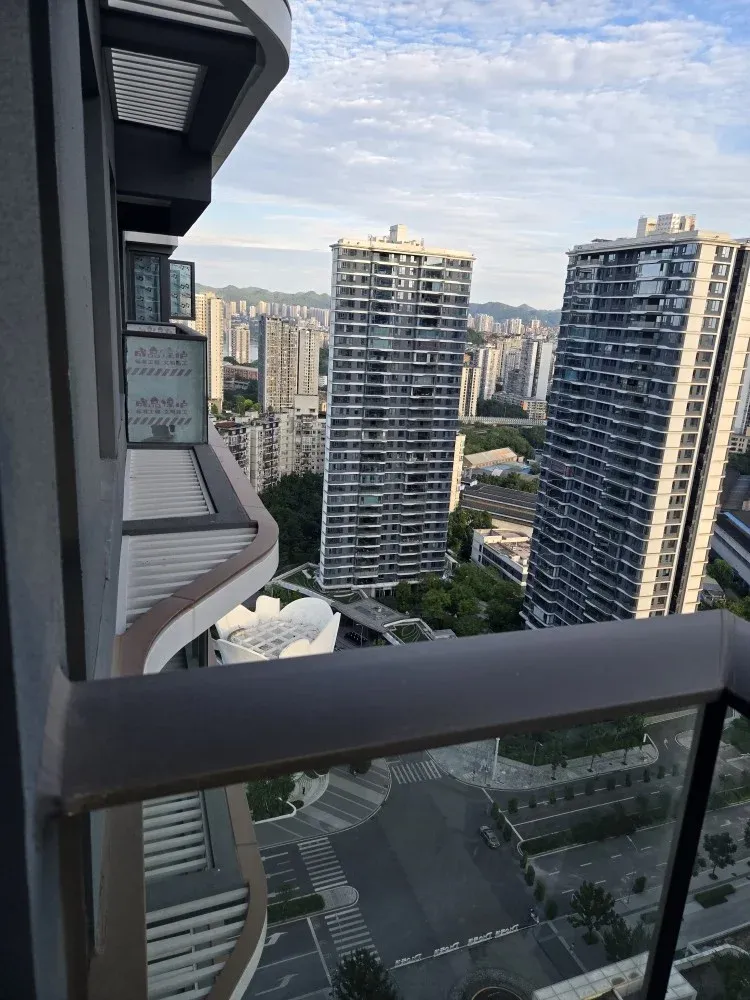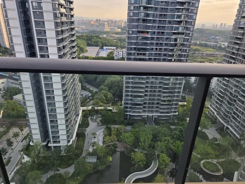 建面约99平米清水房高区实拍,多面采光,主采光方向朝南又看大中庭,同时享受约上百米楼间距,阳台侧面有彩蛋~还能看到远处的少部分夹缝江景,真是一点额外的小惊喜!