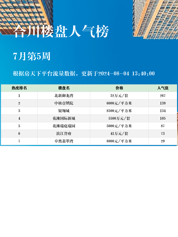 这就是本次的合川人气楼盘榜单,大家觉得哪个楼盘最吸引你呢?欢迎留言讨论哦!😊