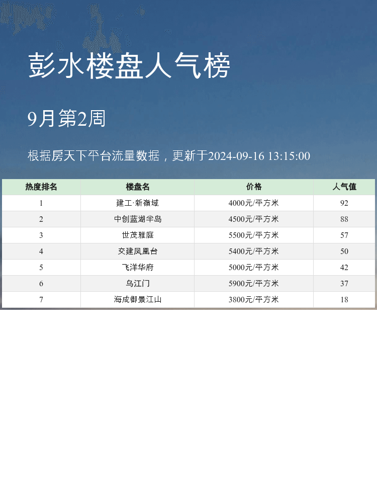 以上就是彭水人气楼盘榜单前三名的详细介绍啦~大家在选择的时候可以根据自己的需求,重点考虑这些楼盘的特点。希望大家都能找到理想的新家!🏡✨