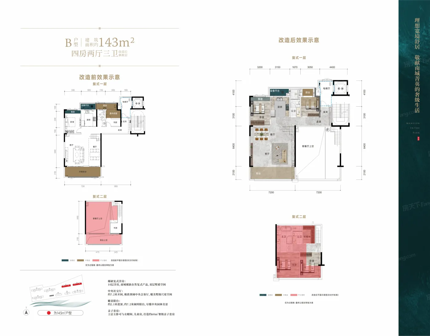🏡四期上瑞府组团,共计8栋房子,分为4栋高层和4栋洋房,全部为0公摊平层、负公摊复式洋房。宣战全城的神户型,就位于10层高小洋楼,约143㎡复式户型,是南城唯一在售复式洋房,该户型最高得房约135%。