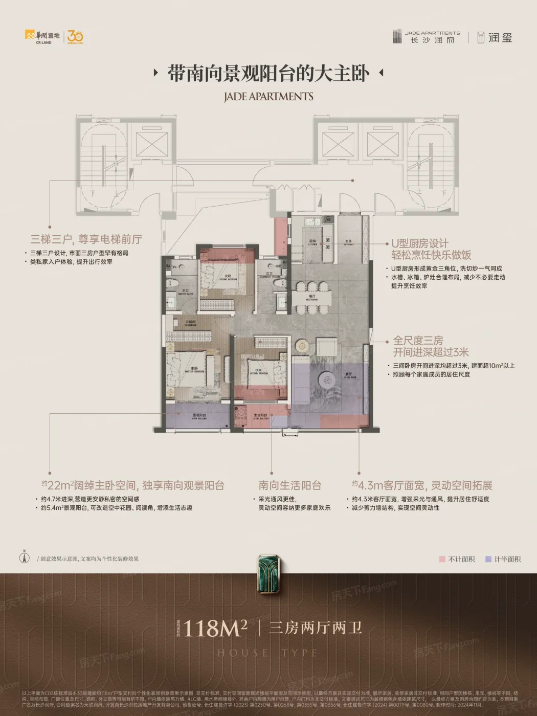 朋友上周末拉着我去看房,进门就被惊到!天心区这个新盘居然有118㎡做三房双卫?主卧带独立衣帽间和270°转角飘窗,厨房U型台面直接塞下双开门冰箱!更绝的是自带幼儿园+九年制学校,家长群里早传疯了