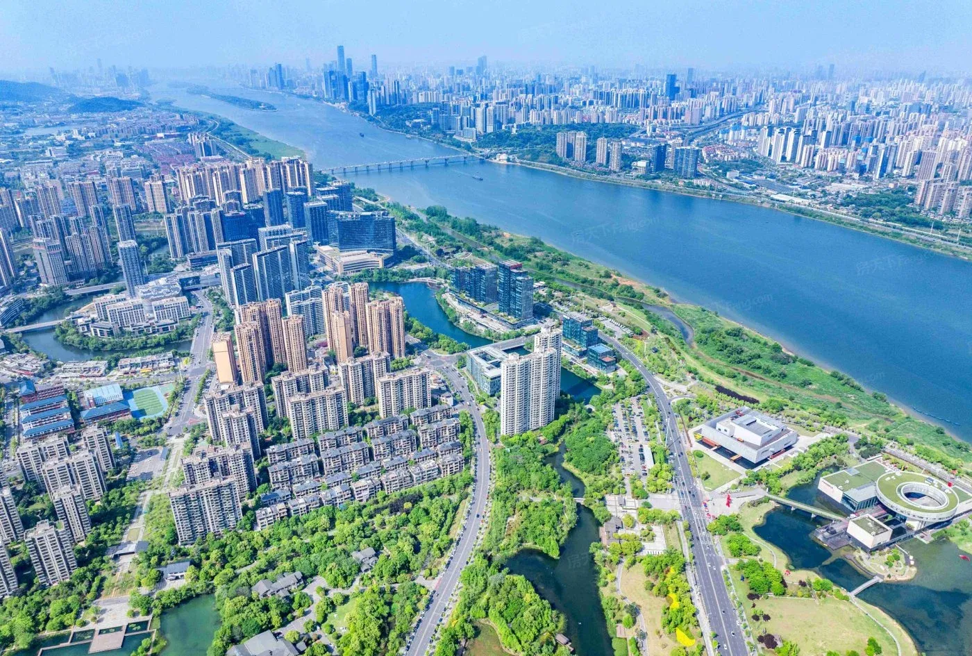 ✅ 品牌房企+江景资源:珠江实业开发,南向直面湘江,北向俯瞰湿地公园,稀缺双景观配置。