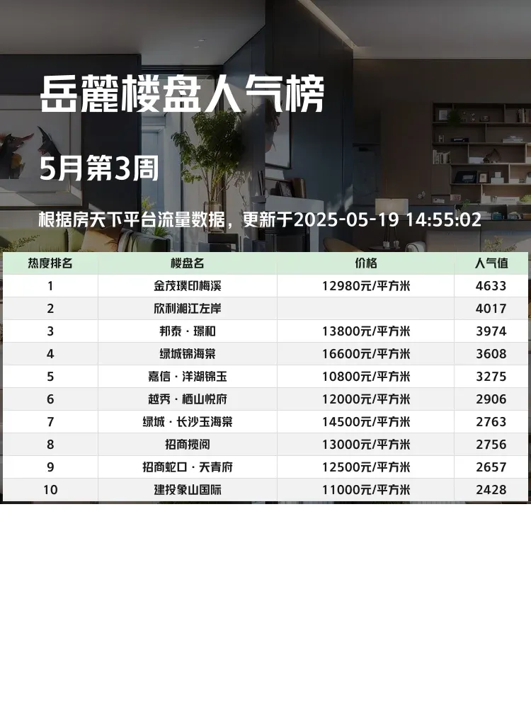 买房盯准人气榜🏆!当下市场分化明显,跟着热度选盘既能避开"坑盘",又能享受成熟配套红利✨。这份岳麓区真实热度榜单,从交通、教育、户型三大刚需维度帮你精准排雷💣,看完秒懂该冲哪个盘!