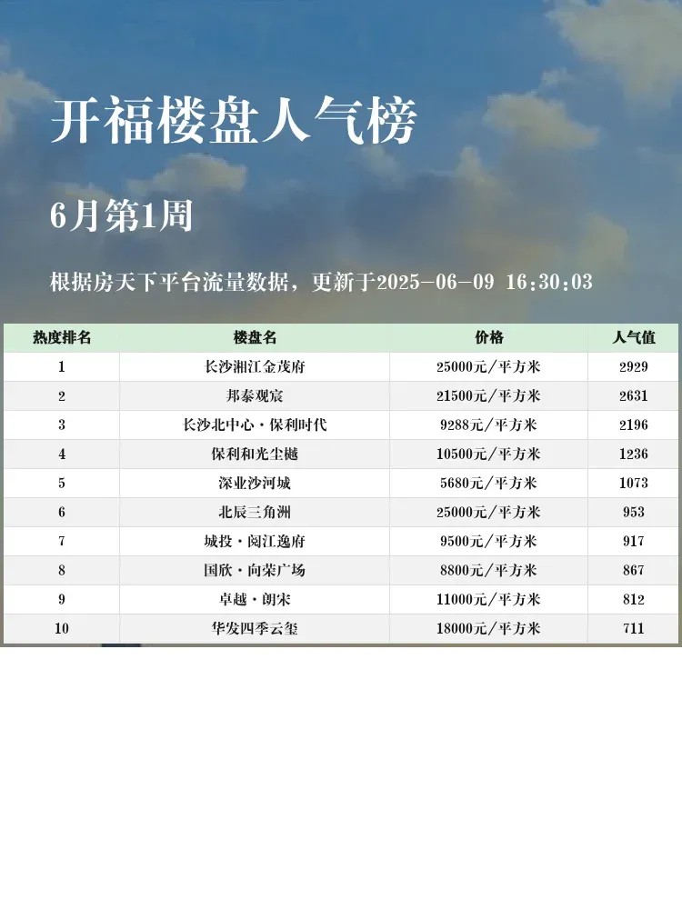 买房选房看榜单准没错!🏆人气楼盘榜单能直观反映市场热度,帮我们快速锁定优质项目~当前市场下,地段、配套和性价比才是王道!这份开福区最新榜单,带你挖到真正的宝藏楼盘💎