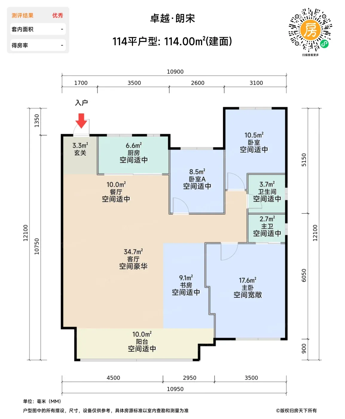 2️⃣ 建面88㎡做出三室两卫+16.5㎡主卧套间,实测得房率超过100%,重点全飘窗赠送!比同面积段多出个储物间的空间,熊孩子的平衡车终于不用和洗碗机抢地盘。