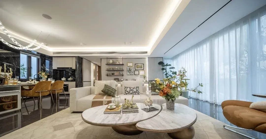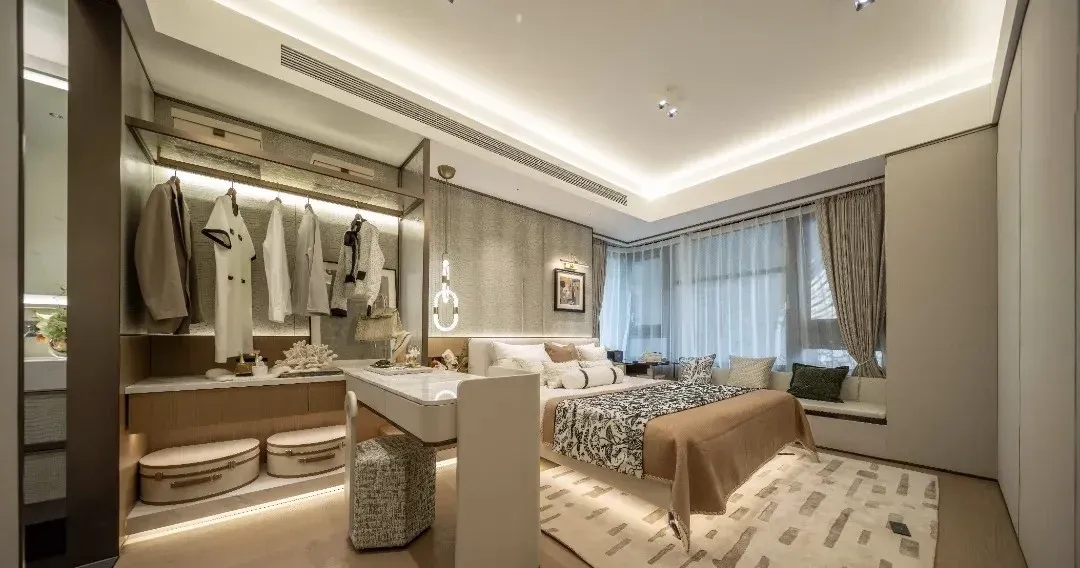 三房做到6.5的开间大横厅设计彩光好视野非常开阔 前视野可以做到百米开外没遮挡视野好 通风效果好外立面进行了统一封窗统一交付 再次增大了视野的距离外立面都是玻璃幕墙和铝板结合的交付的标准节省了装修成本外立面大气科学分区,功能与舒适兼得主卧+次卧+多功能书房/儿童房,满足家庭成长需求,动静分离,互不干扰 全明户型,南北对流,阳光清风自由流动,让家时刻充满自然气息可根据需求改造书房为衣帽间、工作室或客房,解锁多样生活。高级灰与暖木色碰撞,搭配低饱和度软装,营造优雅而不失温馨的格调嵌入式灯光系统、智能窗帘、一键控制家电,科技让生活更从容玄关柜、榻榻米储物、衣柜分区设计,告别杂乱,收纳力MA X。主卧飘窗旁,一杯咖啡配晨光,开启一天生活,客厅开阔无阻,孩子奔跑玩耍,父母沙发小憩,笑声充盈每个角落。 U型厨房连接餐厅,6人长桌容纳欢聚时光,烹饪与社交两不误。