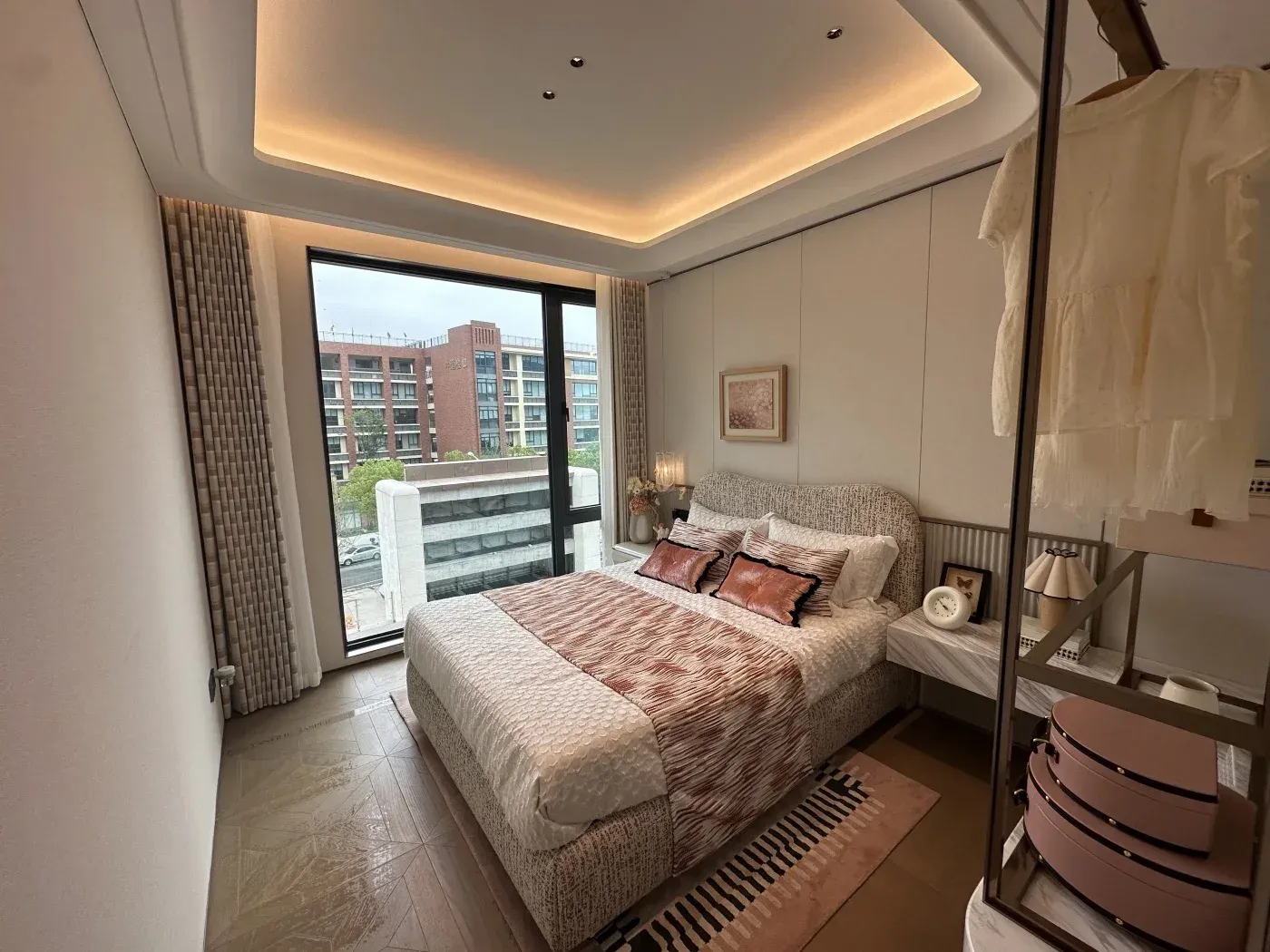 站在117㎡的飘窗前冲手冲咖啡,抬眼就是洋湖湿地公园的绿意,这种「公园房」的日常确实香。但实测洋湖湿地站步行约13分钟的距离,对赶早八的上班族不算完美。板块内富力星光汇等商业体仍在建设中,现阶段买菜要蹭隔壁小区的底商。