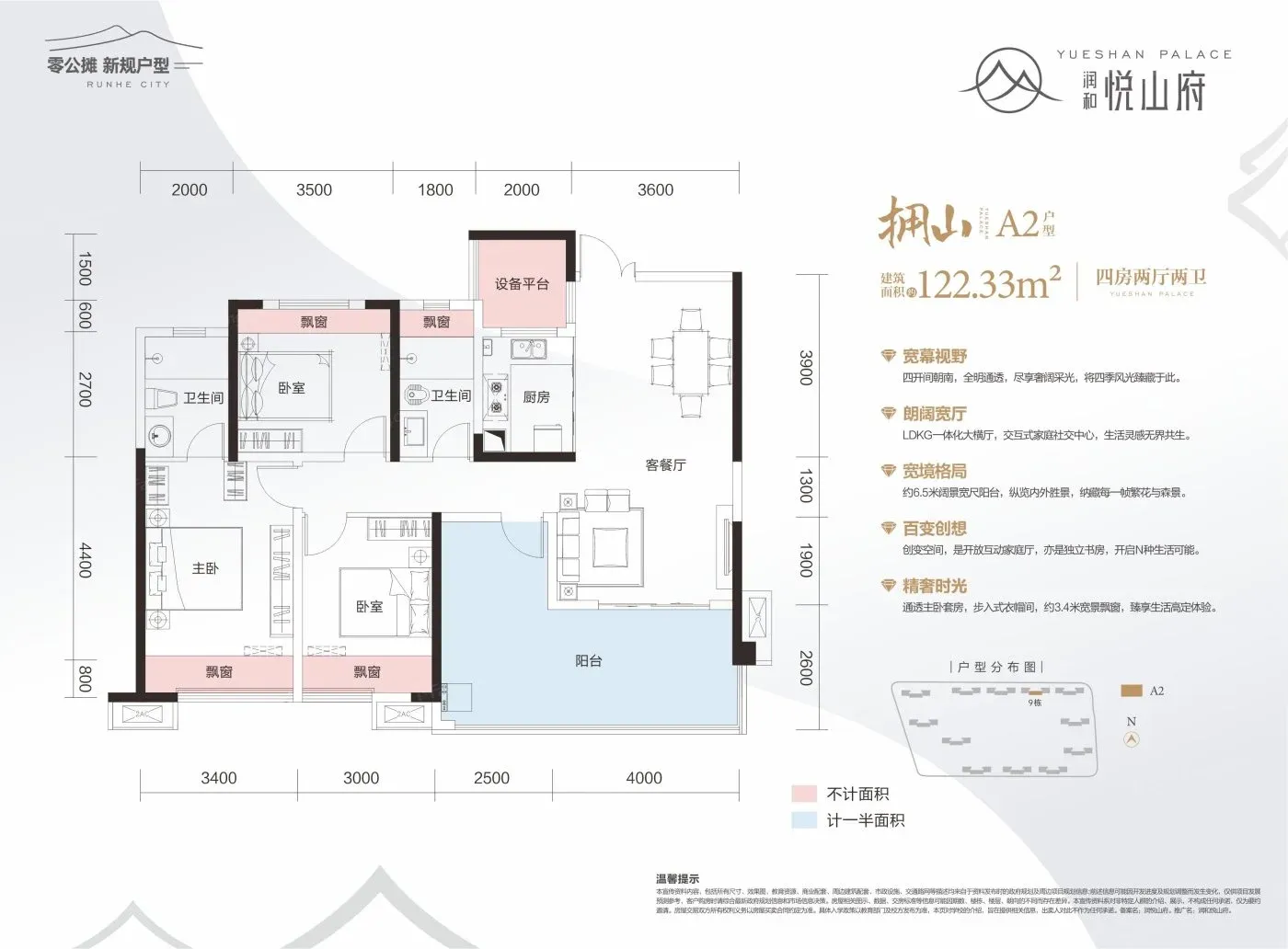 反常识1:零公摊设计,空间不浪费。作为望城新规盘,122㎡户型实际使用面积接近130㎡,公摊近乎于零,像白送了几个平方。