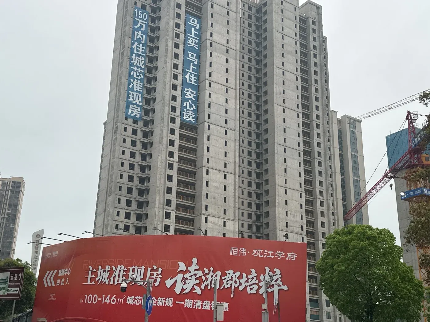 今天顶着大太阳🌞直奔城发恒伟·观江学府现场!实拍一手高清图新鲜出炉📸,项目位于书院南路与南沿路交汇处,主打地铁沿线+品牌地产双标签🚇🏗️。毛坯板楼设计,绿化率35%🌳,整体偏改善型住宅定位,2026年6月30日交付6#楼,现场工地进度肉眼可见~