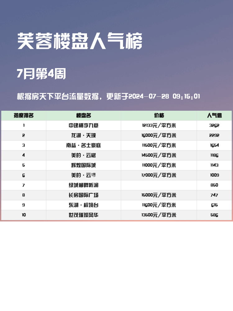 房市如战场,选对好楼盘不仅仅关乎生活质量,还能为未来投资增值。今天为大家整理了芙蓉区的人气楼盘榜单,帮助你在购房时有个清晰的参考🔍。选房最重要的还是地段、配套、户型这些核心要素哦,一起来看看吧~